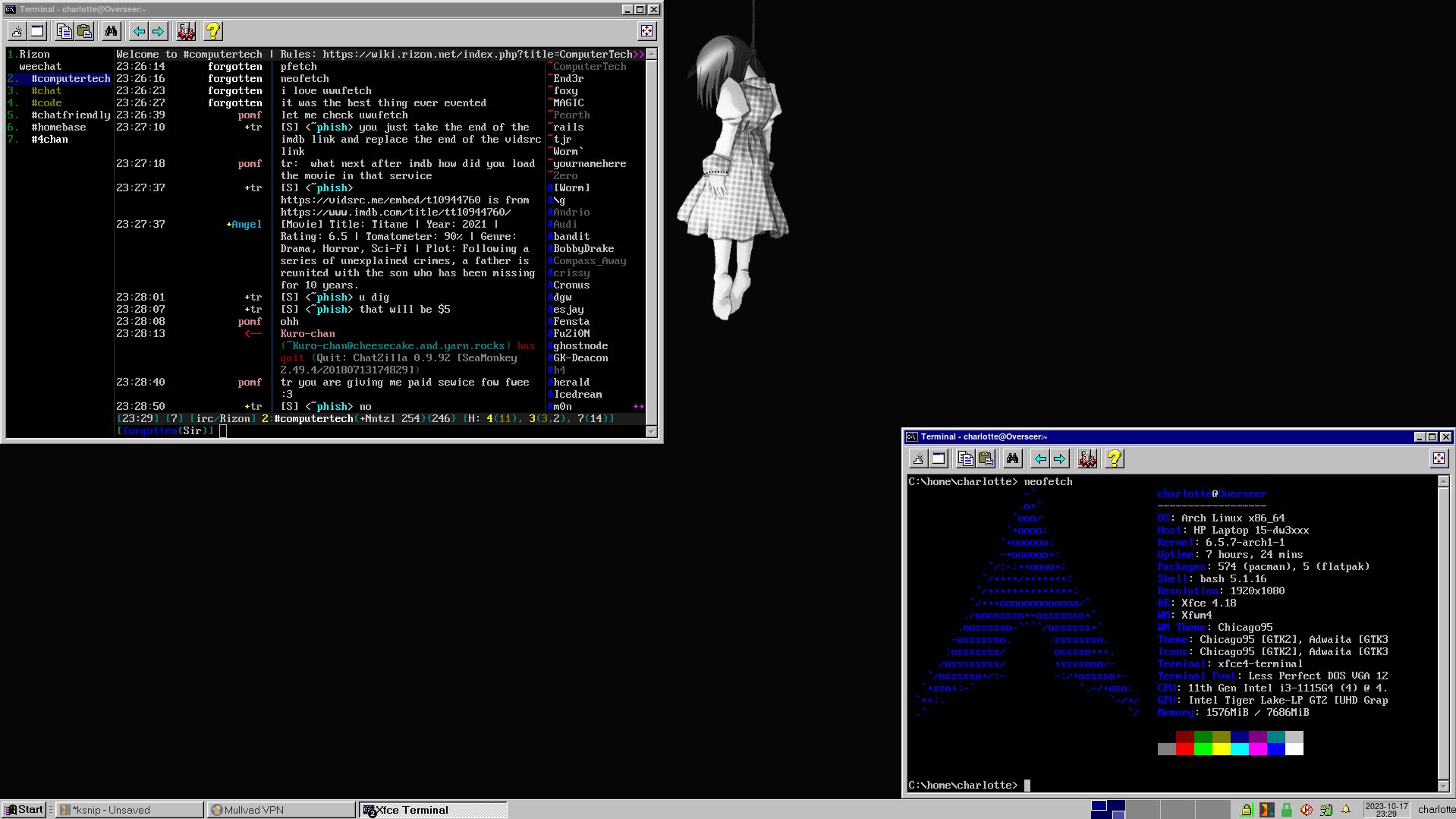 arch linux irssi neofetch windows look
